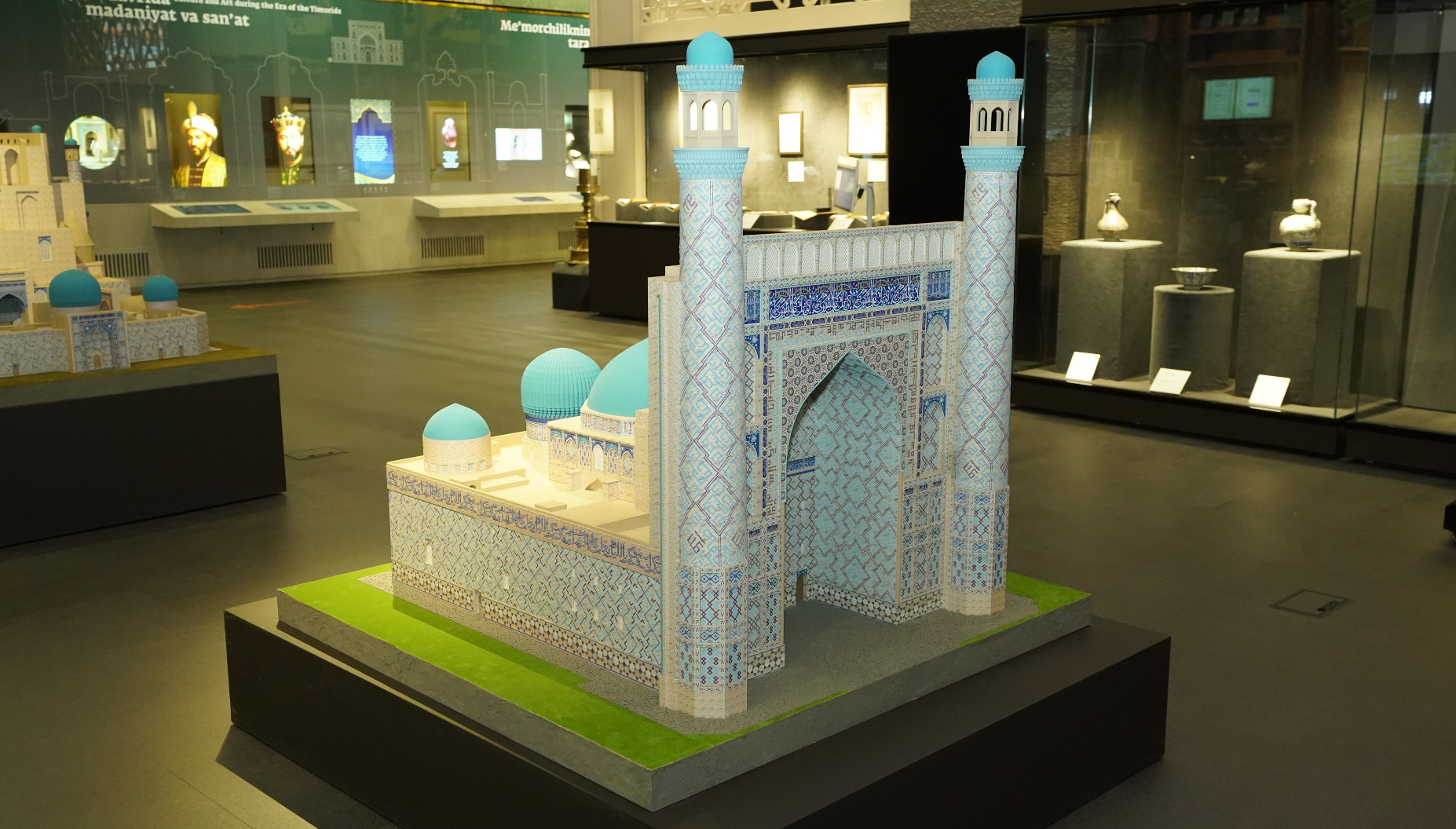 The models of Ak-Saray, Dorus-Saodat, and the Mausoleum of Khoja Ahmad Yasawi displayed in the Second Renaissance section of the Museum of the Islamic Civilization Center in Uzbekistan present the architecture of the Timurid era as a unified conceptual panorama.