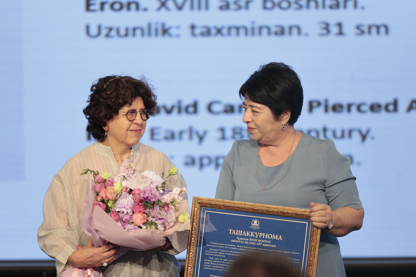 Затем состоялась церемония вручения подарков. Крупнейшие галереи и коллекционеры мира передали Центру уникальные исторические экспонаты. В культурной части выступили известные артисты, а дарители – лично или в онлайн-формате – представили историю своих артефактов и выразили благодарность руководству Центра и Узбекистана.