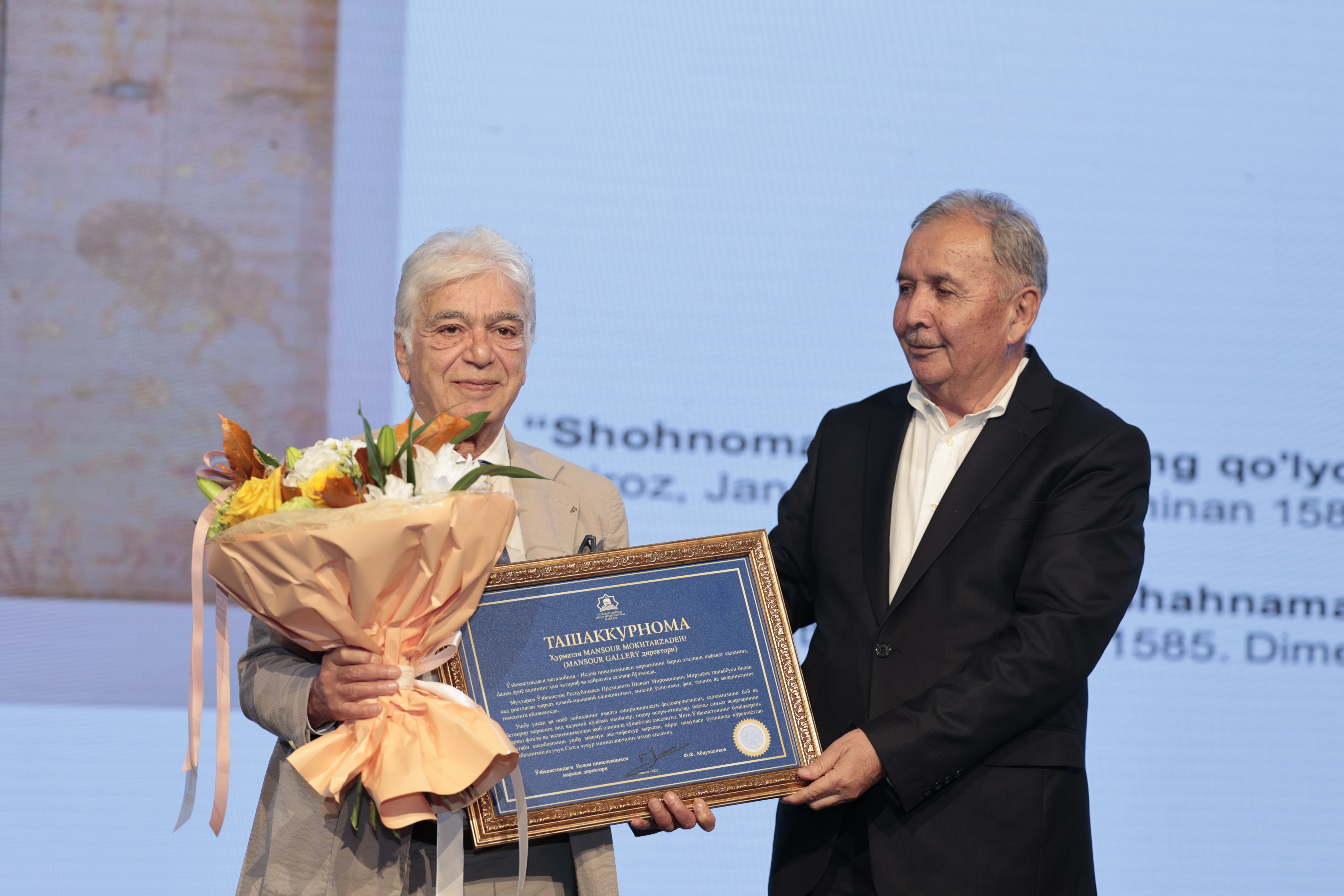 «Для меня большая честь быть среди гостей, почитающих древнюю и богатую цивилизацию вашей страны. Сегодня я дарю Центру страницы “Шахнаме”, переписанные в XVI веке. Рад внести свой вклад в сохранение и представление многогранной культуры Узбекистана миру».