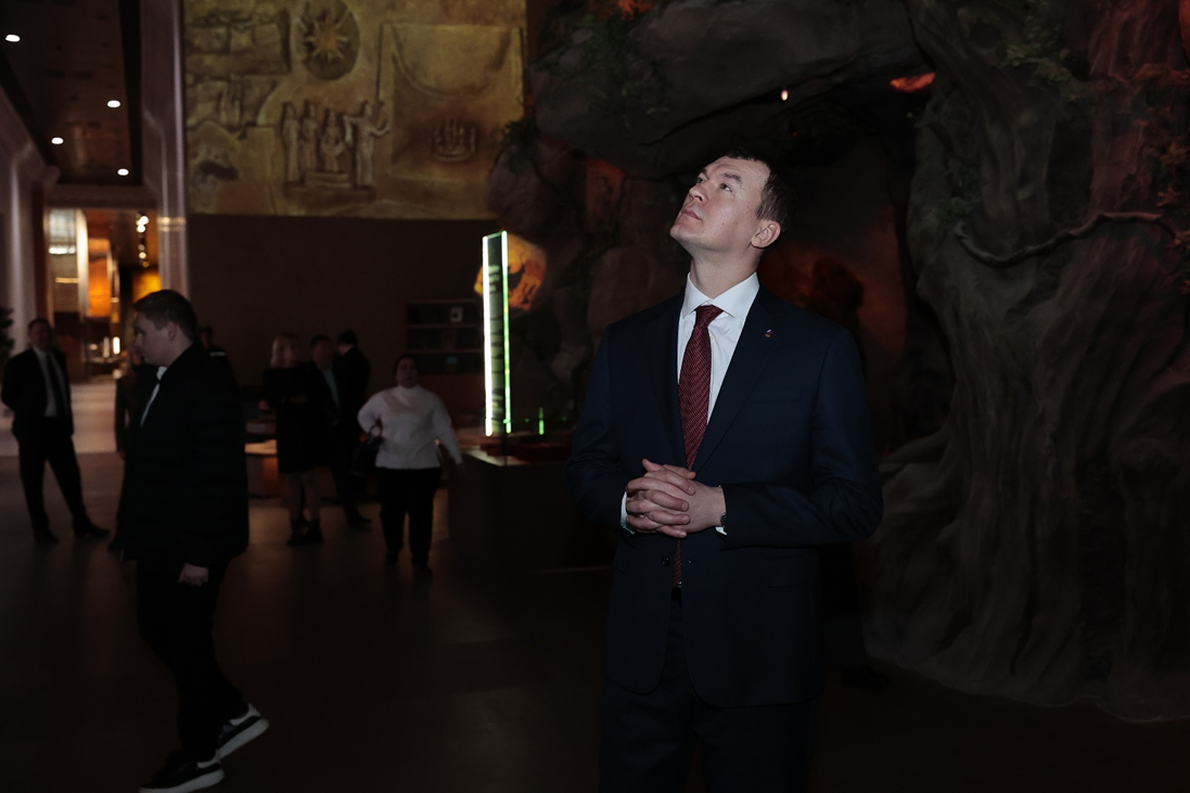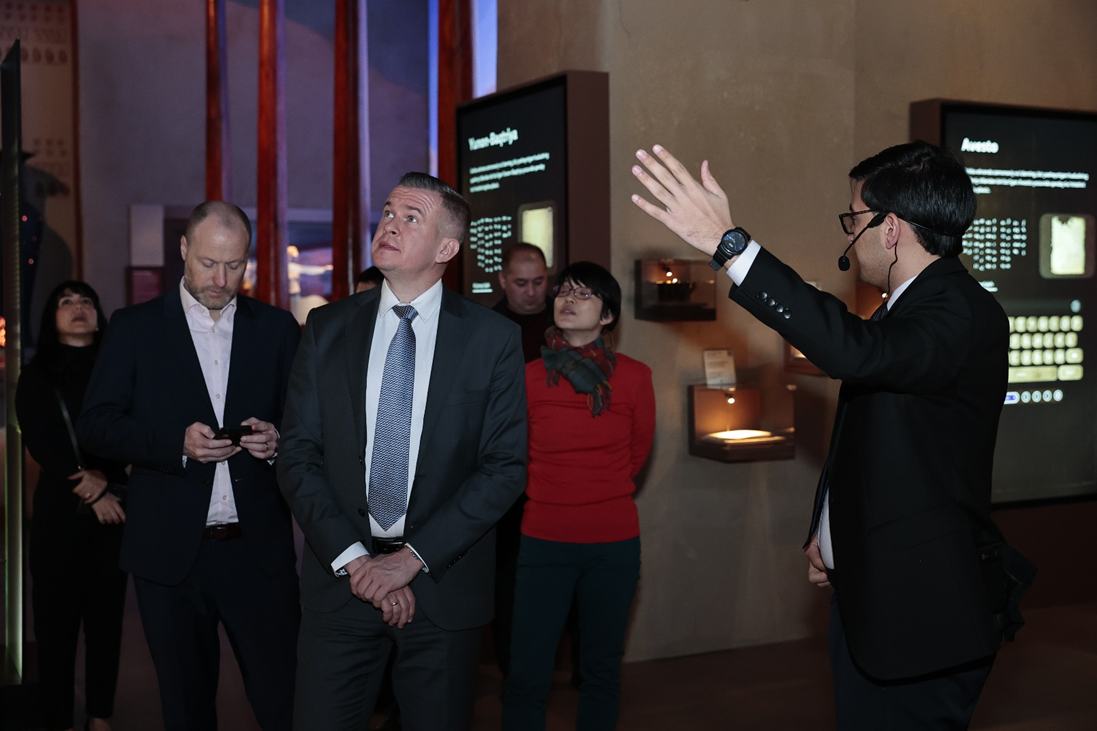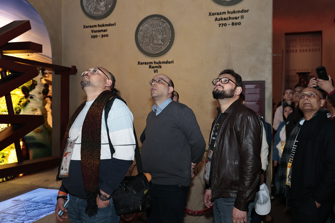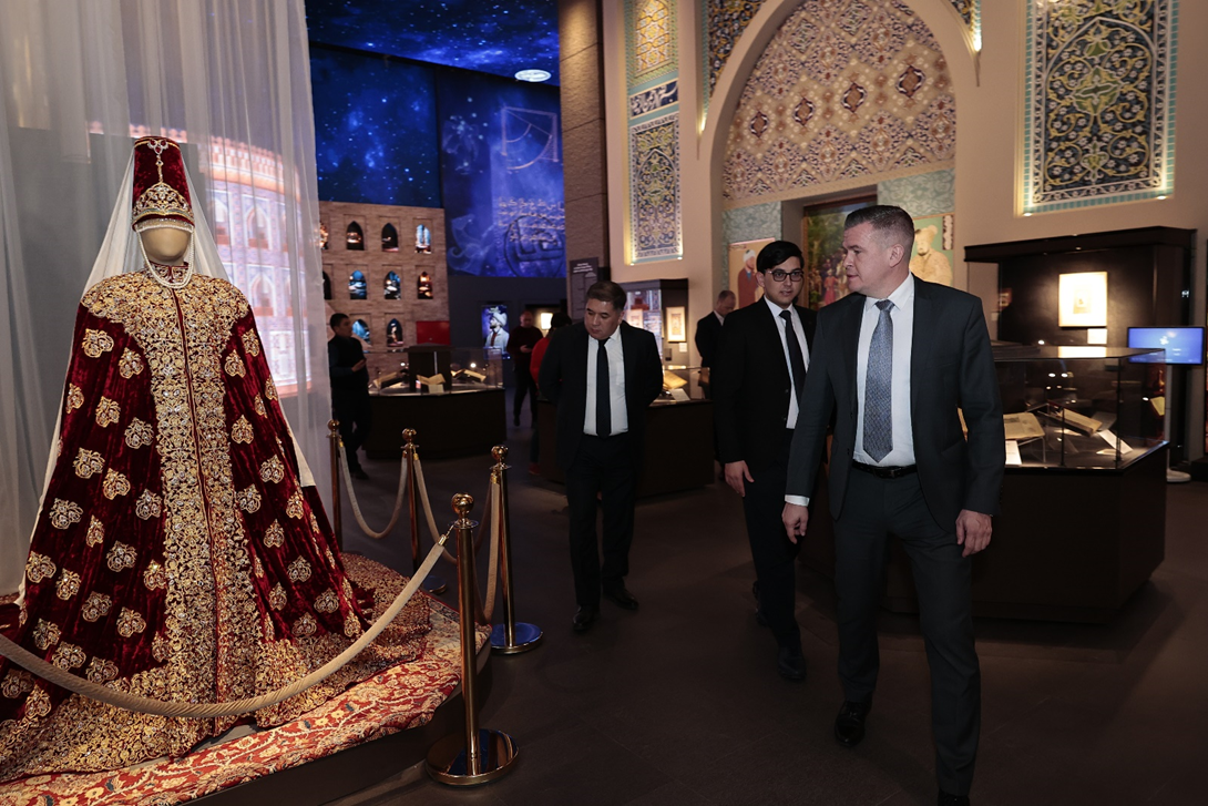 Большой интерес у делегации вызвала экспозиция, посвящённая доисламскому периоду. Здесь представлены редкие древние монеты, ранний образец шахмат как символ интеллектуальной традиции, исторические костюмы и ткани разных эпох. Эти материалы наглядно показывают, что на территории Центральной Азии и до прихода ислама существовали развитая культурная среда, устойчивые экономические связи и традиции глубокого мышления. Подлинные артефакты, интерактивный контент «Стены цивилизаций и открытий», современная подача макетов древних городищ помогают посетителям прочувствовать историческую атмосферу.