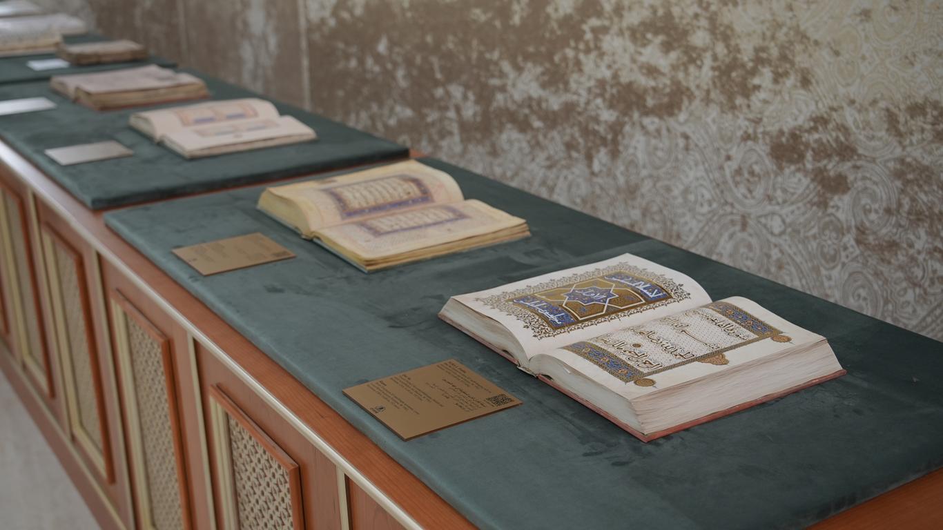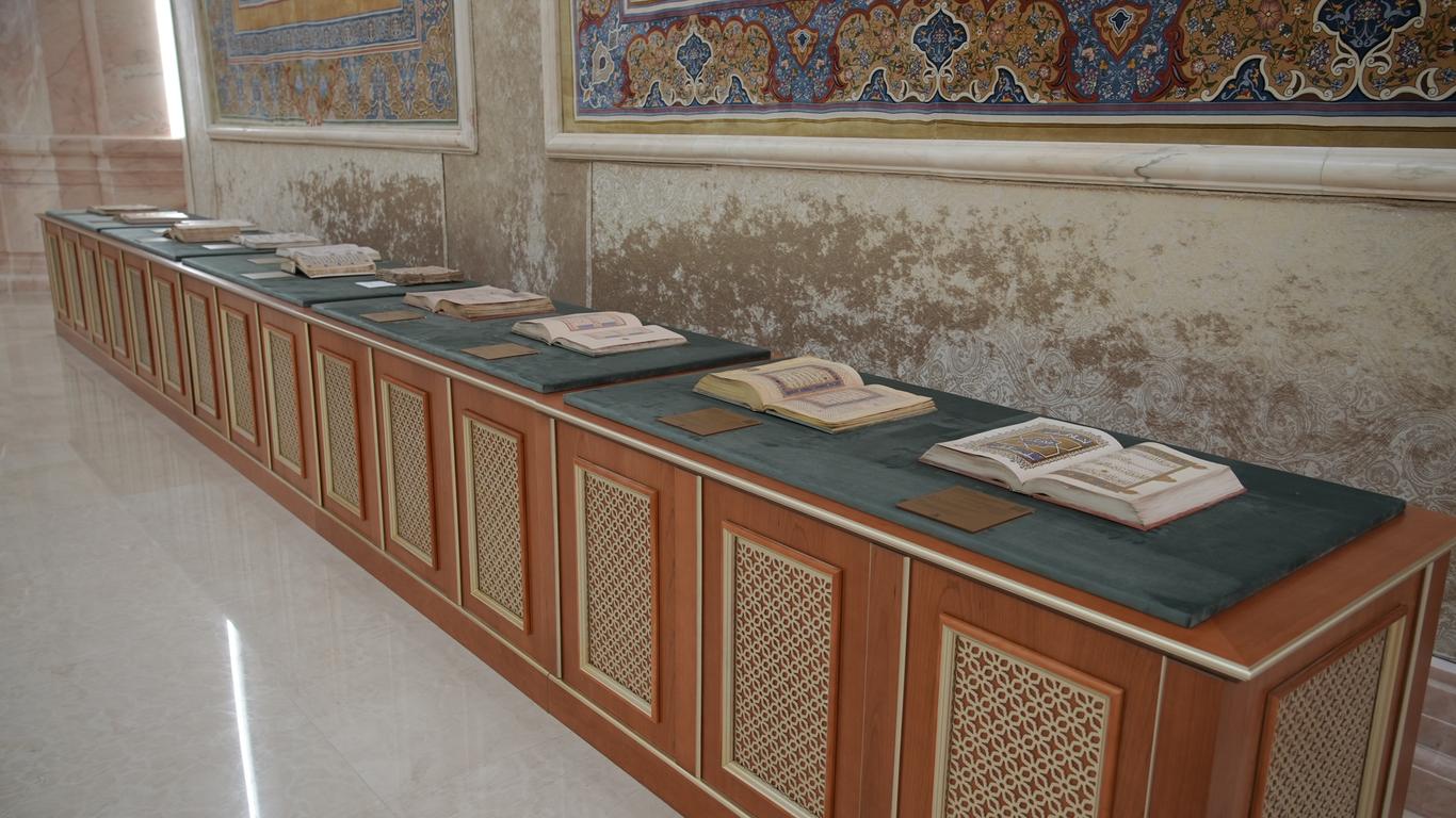 Помимо главного артефакта, в зале представлены рукописные экземпляры Корана, созданные на основе 114 священных текстов — по числу сур, отражающие разные эпохи исламской истории Центральной Азии — от Саманидов и Караханидов до Тимуридов, Шейбанидов и Золотой Орды.