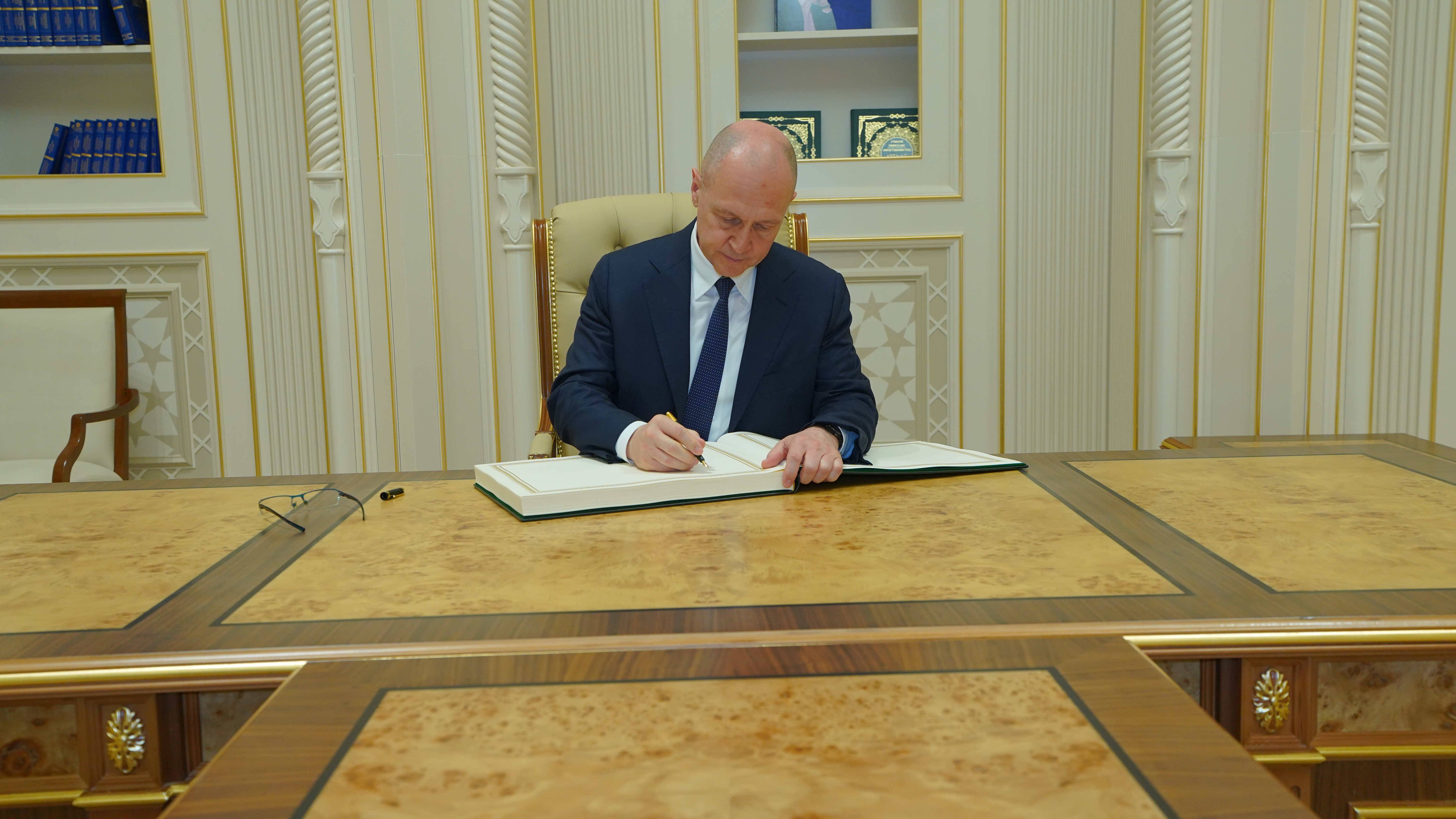 Директор центра Фирдавс Абдухаликов от имени учреждения преподнёс высокому гостю факсимильное издание дивана Хусейна Байкары, переписанного в 1510 году в Герате. В книге представлены газели правителя на тюркском языке, а также четыре уникальные миниатюры, выполненные Камолиддином Бехзадом.