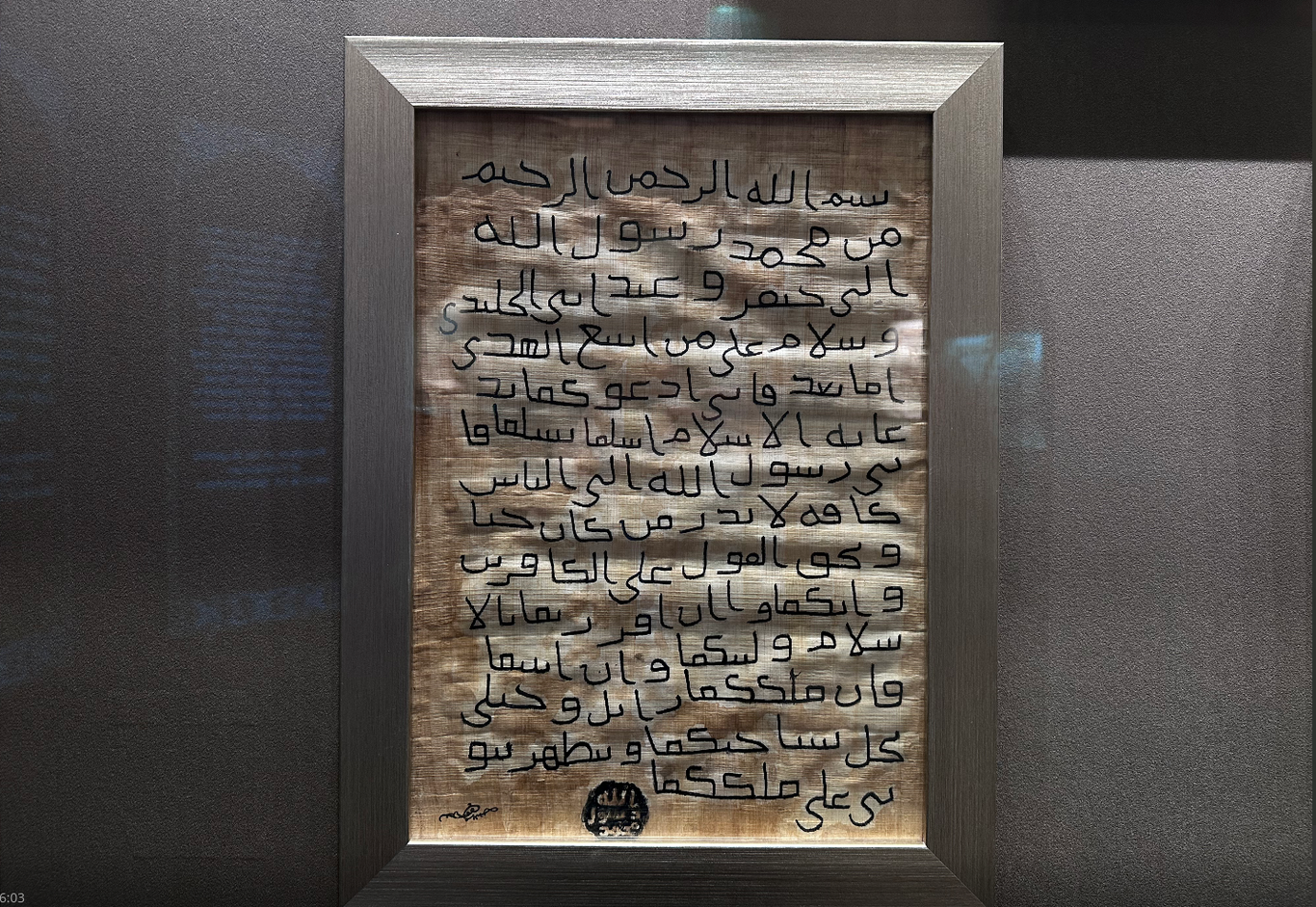 Экспозиция знакомит посетителей с одним из ключевых поворотных моментов исламской истории – шестью знаменитыми письмами Посланника Аллаха (с.а.в.), направленными правителям различных государств.