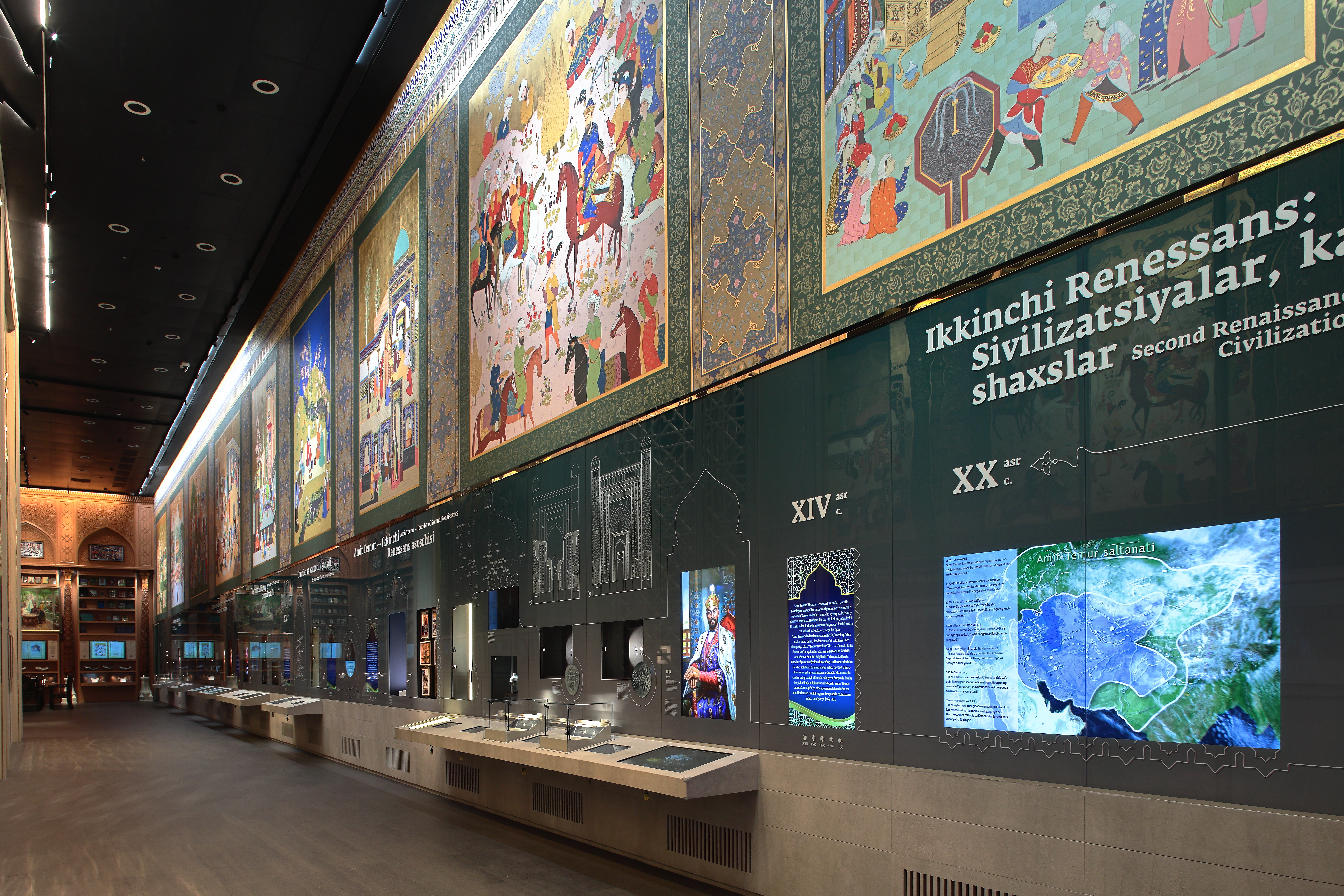 В музее Центра исламской цивилизации в Узбекистане на «Стене цивилизаций и открытий», посвящённой периоду Второго Ренессанса, через миниатюры и визуальные образы оживает 550-летняя история — от эпохи Сахибкирана Амира Темура до династии Бабуридов.