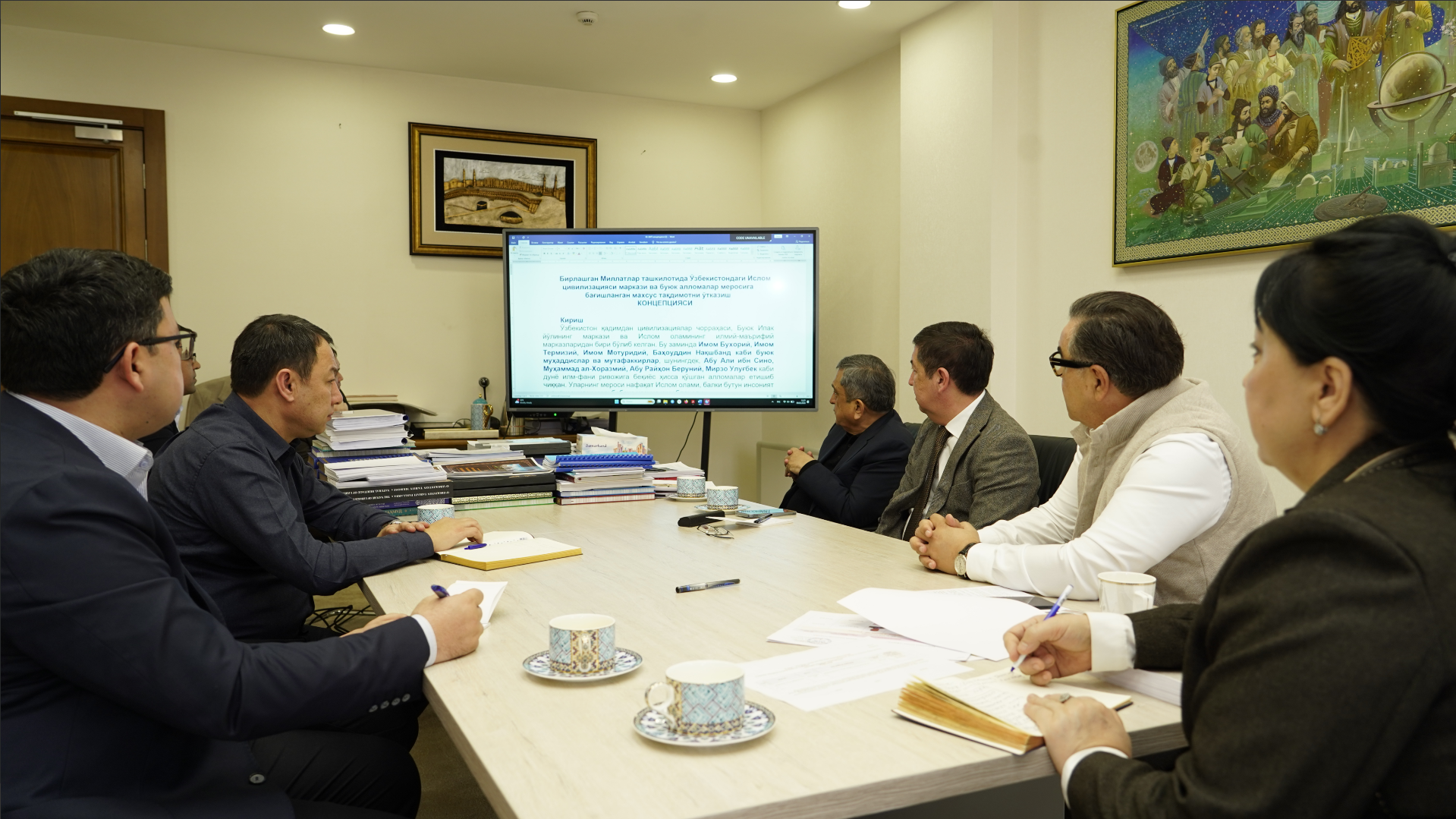 Markaz direktori Firdavs Abduxoliqov rahbarligida Imom Buxoriy xalqaro ilmiy-tadqiqot markazi direktori Shovosil Ziyodov, Imom Moturidiy xalqaro ilmiy-tadqiqot markazi direktori Komiljon Shermuhammedov, Imom Termiziy xalqaro ilmiy-tadqiqot markazi direktori Muzaffar Joniyev hamda Markaz xodimlari ishtirokida bo‘lib o‘tgan yig‘ilishda ana shu vazifani amalga oshirish masalalari ko‘rib chiqildi.