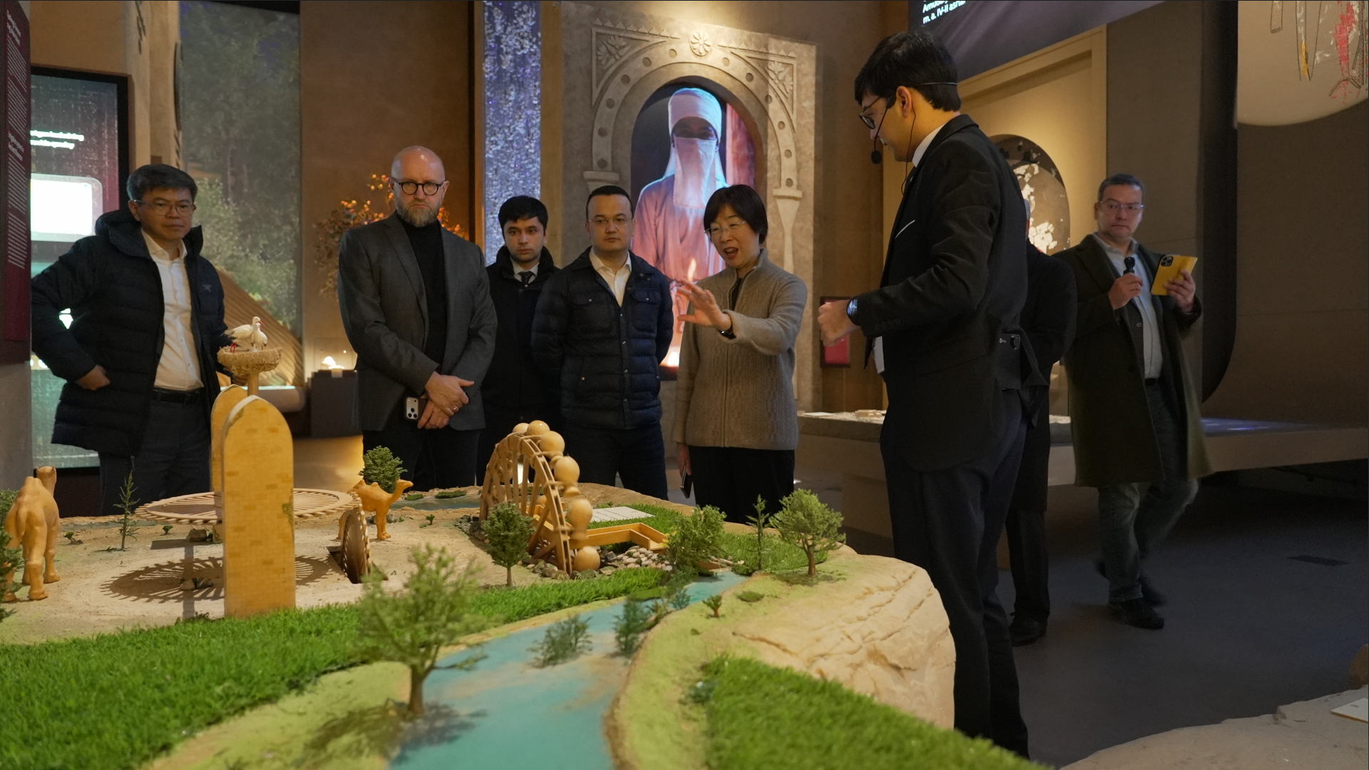 Ekspozitsiyadan o‘rin olgan “Buyuk ipak yo‘li xaritasi”ni mehmonlar O‘zbekistonning tarixiy savdo va madaniy aloqalar chorrahasida joylashgani bugungi xalqaro iqtisodiy hamkorlik jarayonlari bilan uyg‘un ekanini ta’kidladilar. Bu esa tarixiy meros va zamonaviy iqtisodiy aloqalar o‘rtasidagi uzviy bog‘liqlikni yana bir bor ko‘rsatdi.