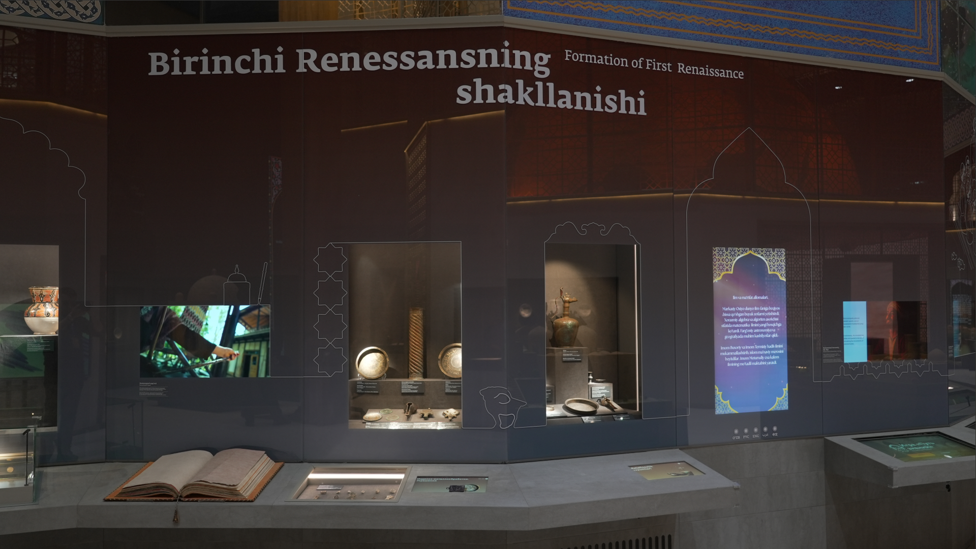 – Birinchi Renessans davrining eng muhim ixtirolaridan biri – Samarqand qog‘ozi tarixiga murojaat qilsak, ayrim manbalarda Talas jangidan so‘ng xitoylik ustalar Samarqandga kelib, qog‘oz tayyorlash sirlarini o‘rgatgani haqida ma’lumotlar uchraydi. Biroq bir qator tadqiqotchilar fikricha, Samarqandda qog‘oz ishlab chiqarish an’analari bundan avval ham mavjud bo‘lgan. Xitoy tajribasi esa mahalliy tajriba bilan uyg‘unlashib, yanada mukammal va o‘ziga xos Samarqand qog‘ozchilik maktabining shakllanishiga xizmat qilgan. Aynan shu sintez natijasida Samarqand qog‘ozi keyingi asrlarda keng rivoj topadi. Uning mustahkamligi, pishiqligi va sifat darajasi nihoyatda yuqori bo‘lgan. Zararga chidamliligi sababli ko‘plab qo‘lyozmalar asrlar davomida saqlanib qolgan. Ekspozitsiyada namoyish etilayotgan namunalar bugungi an’anaviy texnologiyalar asosida tayyorlangan bo‘lib, tashrif buyuruvchilarga uni ushlab ko‘rish, varaqlash imkoniyati yaratilgan. Qog‘ozning yuqori sifati uni keng hududlarga eksport qilinishiga sabab bo‘lgan. U islom olami markazlari – Bag‘dod, Kufa, Andalusiya, hatto Yevropaning ayrim hududlarigacha yetib borgan.