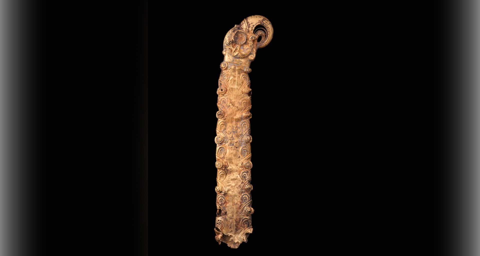 Ahamoniylar davriga oid, miloddan avvalgi IV asrda yaratilgan noyob oltin uchlik artefakt tarix va sanʼat muhitini larzaga soldi. Ushbu 24,5 sm uzunlikdagi, 40 gramm ogʻirlikdagi buyum nafaqat moddiy, balki maʼnaviy va estetik yuksaklikni namoyon etadi.